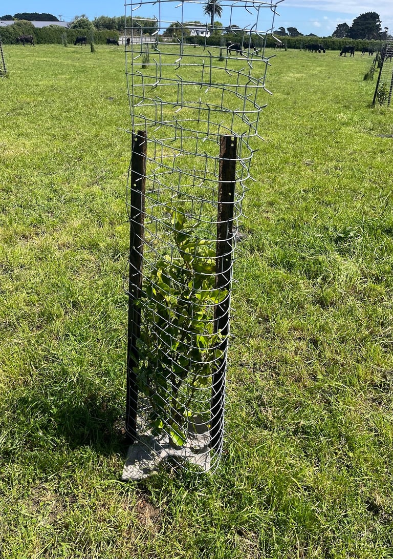 Some photos from our Dairy Trust Taranaki trial site near Hāwera, where their team replaced our earlier failed guards with Cactus guards. The broadleafs (Griselinia littoralis) are doing especially well here.