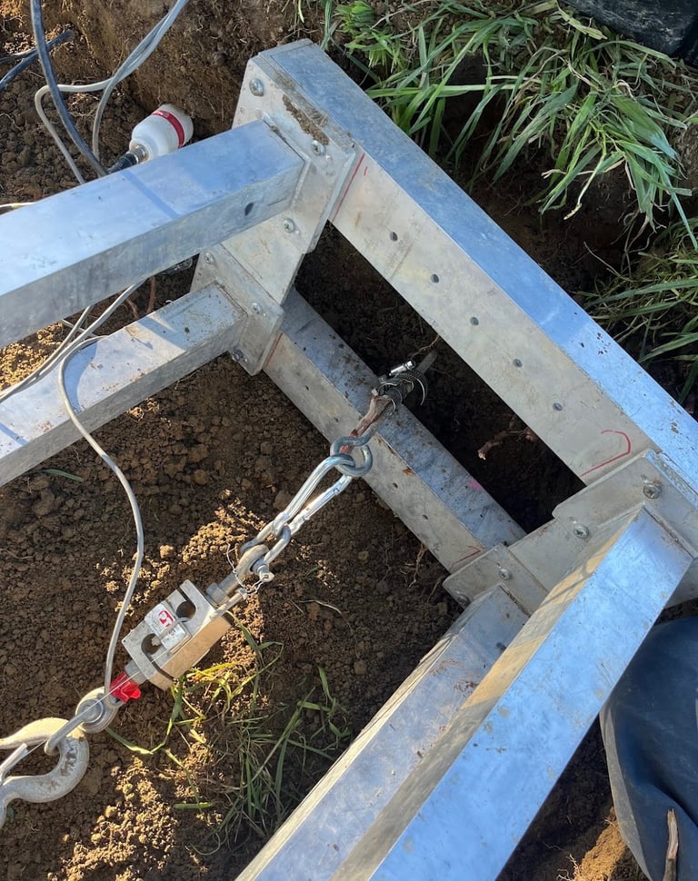 To measure root strength, we attached a load cell (a sensor that measures force) to individual roots. Each root was then gently pulled until it broke, while a data logger recorded the exact force required to snap it.