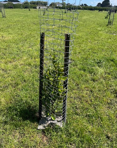 Some photos from our Dairy Trust Taranaki trial site near Hāwera, where their team replaced our earlier failed guards with Cactus guards. The broadleafs (Griselinia littoralis) are doing especially well here.